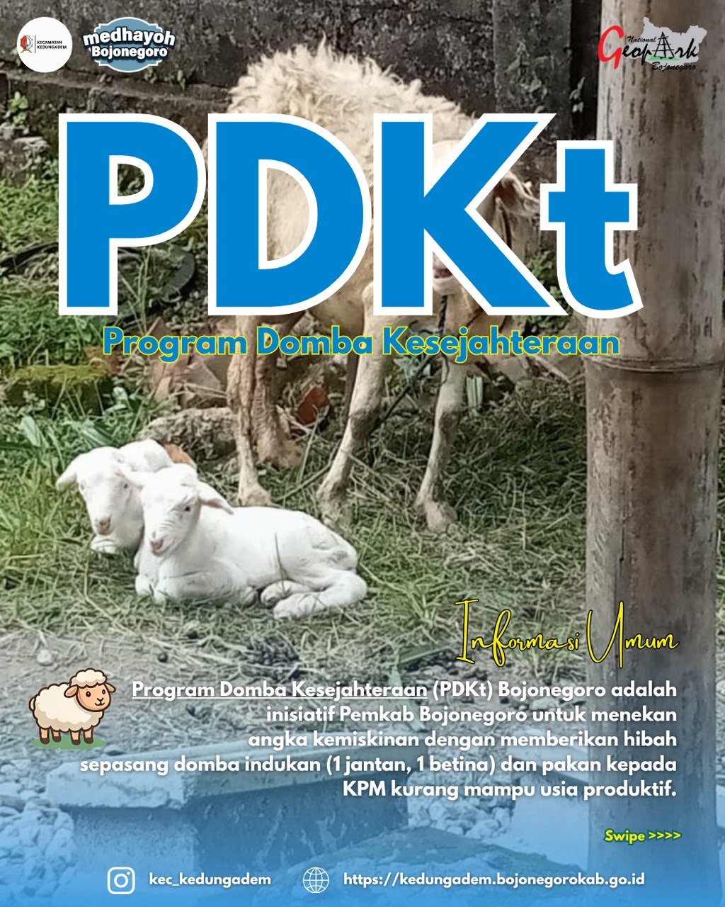 Pada tahun 2025, sebaran program PDKt di Kecamatan Kedungadem dialokasikan kepada 85 KPM yang tersebar di 23 Desa. Hingga tanggal 16 April 2026, perkembangan program menunjukkan hasil yang positif dengan total kelahiran domba sebanyak 13 ekor yang berasal dari 8 KPM penerima manfaat. Program ini menjadi salah satu strategi Pemerintah Kabupaten Bojonegoro dalam pengentasan kemiskinan dan peningkatan kesejahteraan masyarakat berbasis potensi lokal. Melalui pemanfaatan sektor peternakan yang relatif mudah dijangkau oleh masyarakat pedesaan, program ini diharapkan mampu menciptakan sumber ekonomi baru di tingkat rumah tangga.